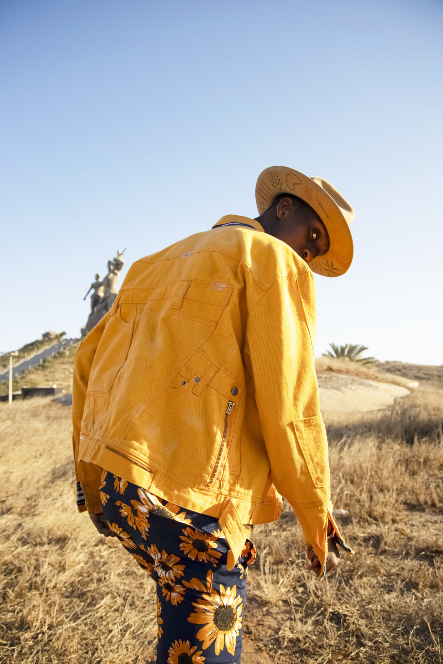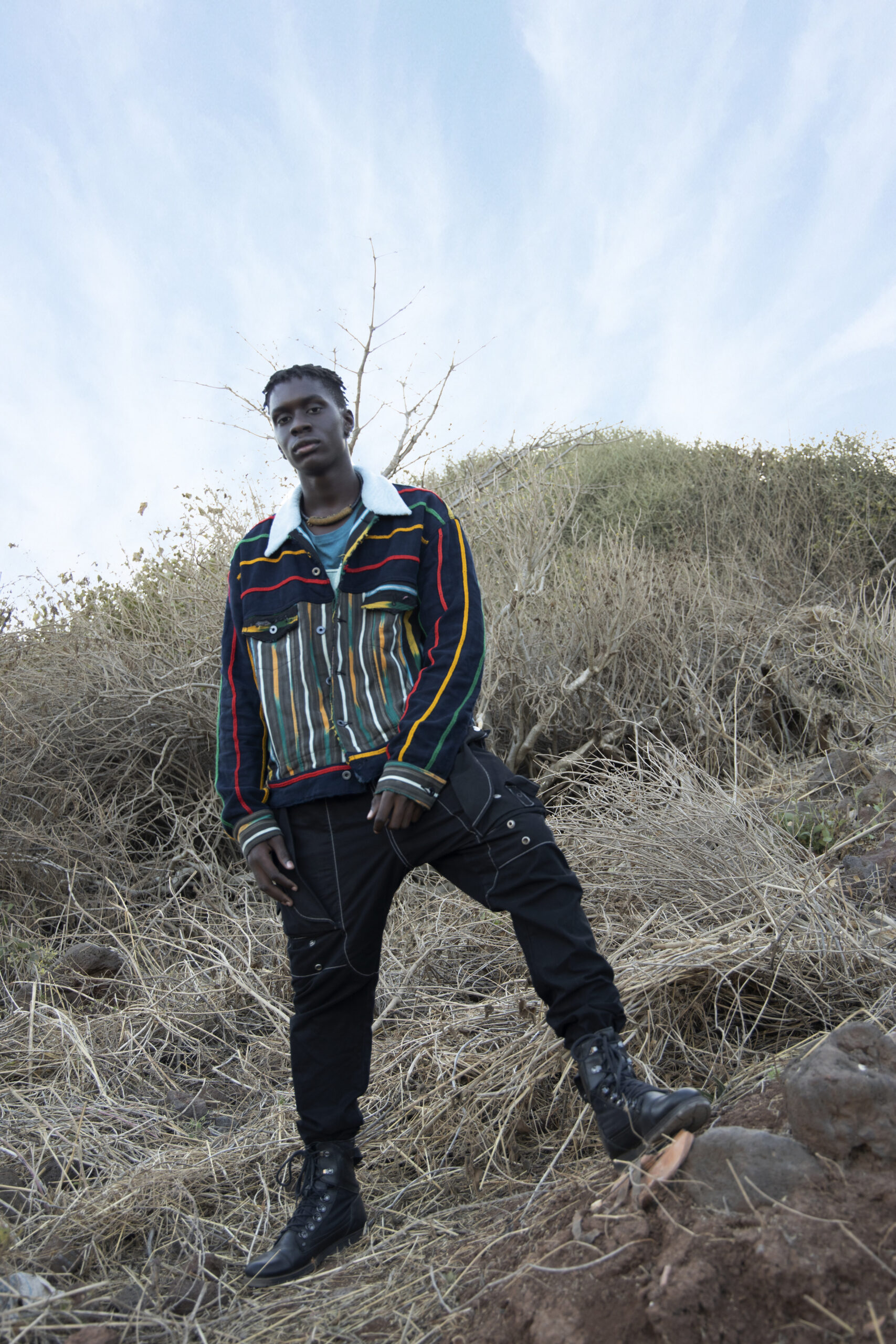 Beyond jackets, the editorial also showcases RCSLA’s diverse collection of pants, shirting, and jumpsuits. Each garment is designed to merge modern streetwear silhouettes with African-inspired fabrics and techniques. The result is a look that feels both global and deeply rooted in heritage.