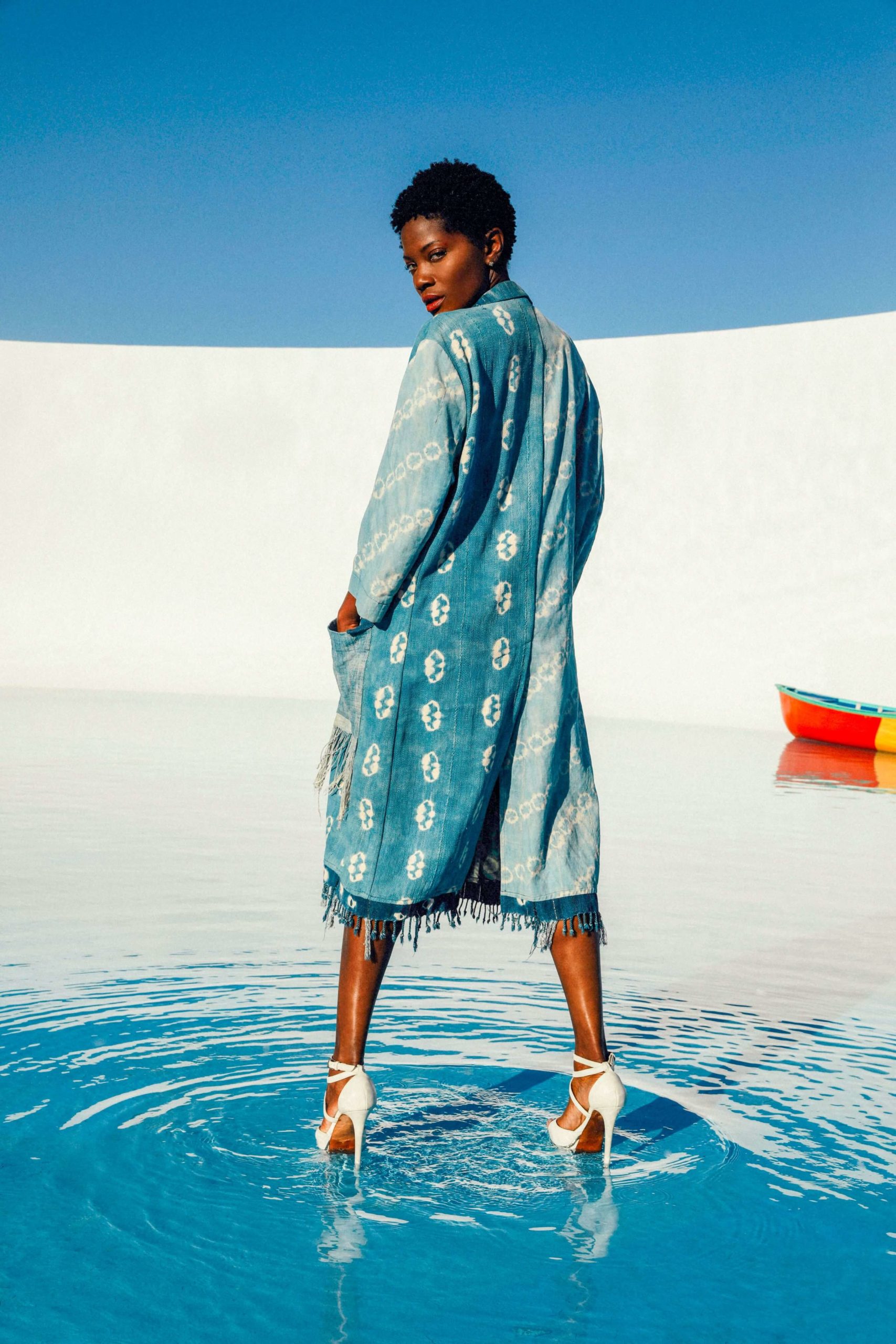 This coat’s fabric is meticulously woven on traditional looms by skilled artisans, using techniques that have been recognized globally for their cultural significance. The natural plant dyes produce the striking shades of deep blue indigo, with patterns created through careful resist-dyeing methods. Indigo dyeing is more than just a process—it’s an ancient ritual with symbolic meaning in many African cultures, often associated with wealth, protection, and spiritual balance. By wearing this luxury indigo coat, you’re not only embracing a beautiful garment but also contributing to the preservation of cultural heritage.