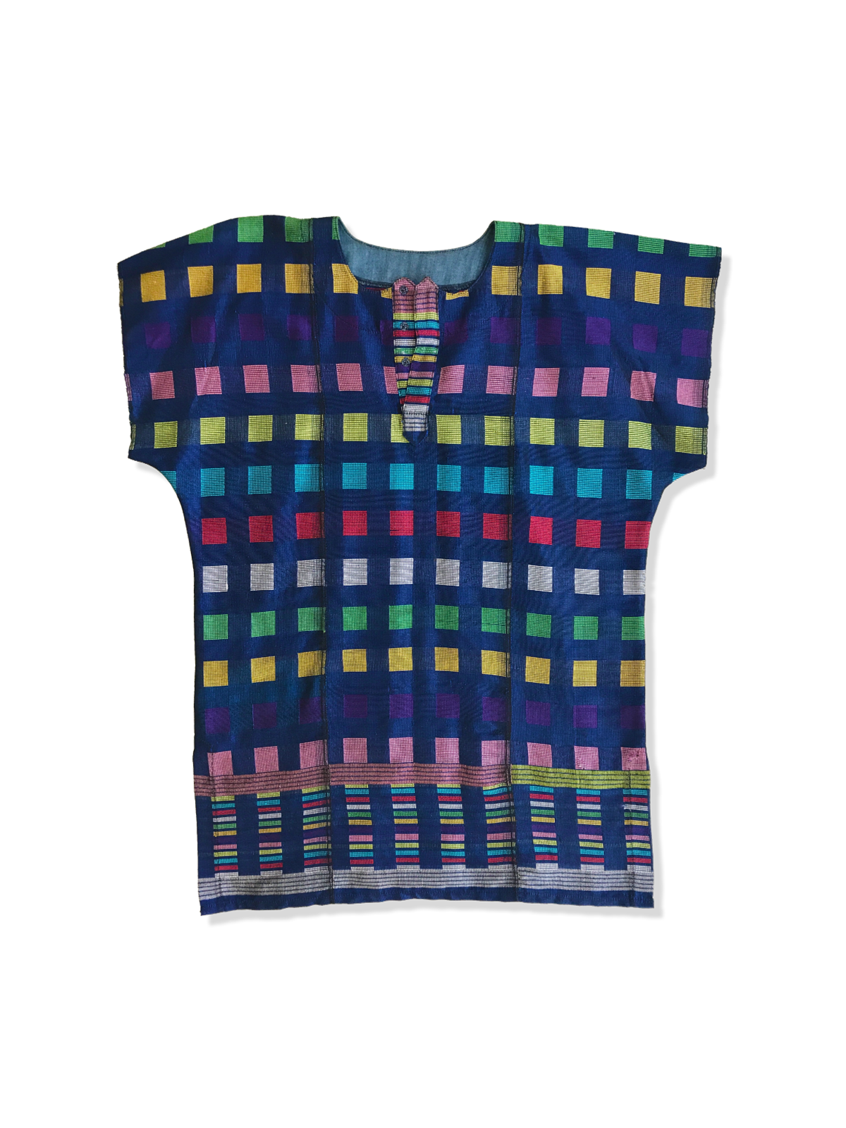 The Handmade Senegalese Tunic is the product of hours of meticulous work on traditional looms. Each square, stripe, and pattern is intentionally woven to create a striking geometric layout that reflects Senegalese textile artistry. This weaving method produces a fabric that is both durable and breathable — ideal for year-round wear.