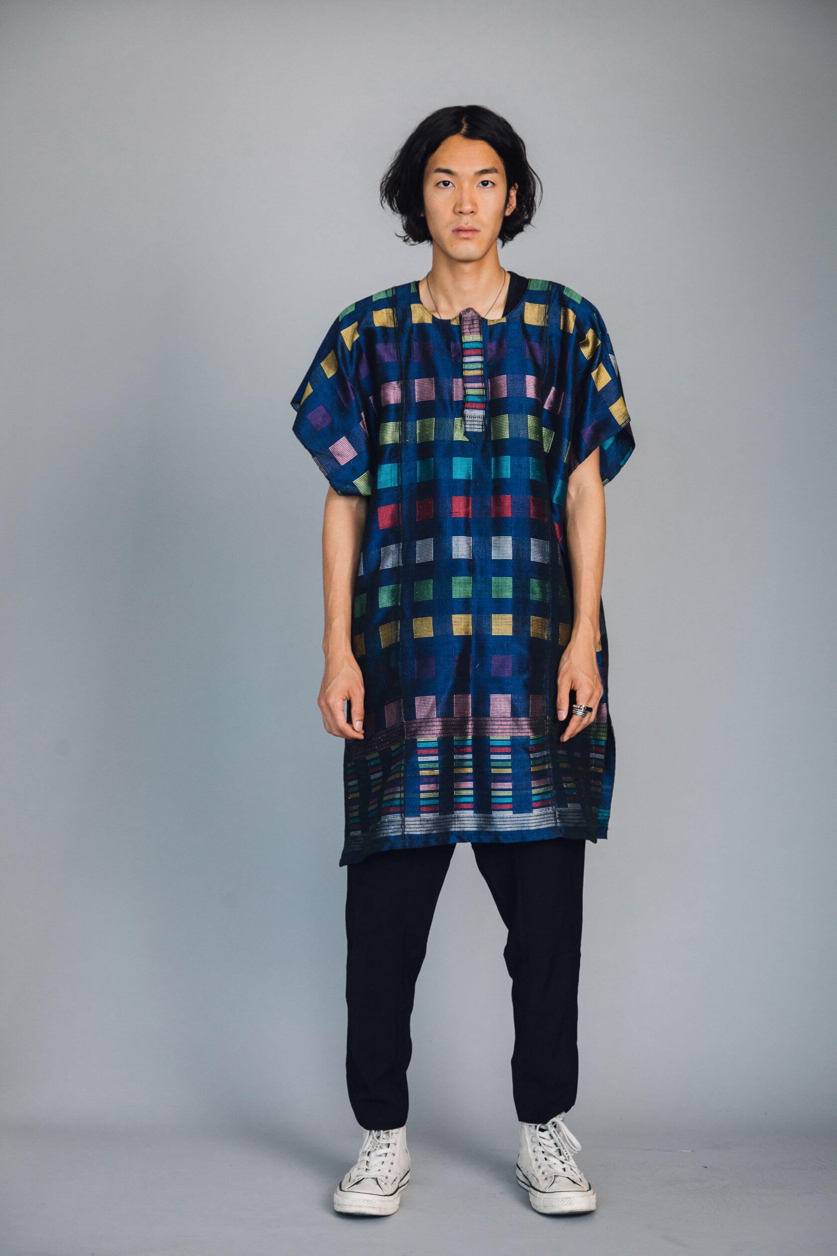 The Handmade Senegalese Tunic is the product of hours of meticulous work on traditional looms. Each square, stripe, and pattern is intentionally woven to create a striking geometric layout that reflects Senegalese textile artistry. This weaving method produces a fabric that is both durable and breathable — ideal for year-round wear.