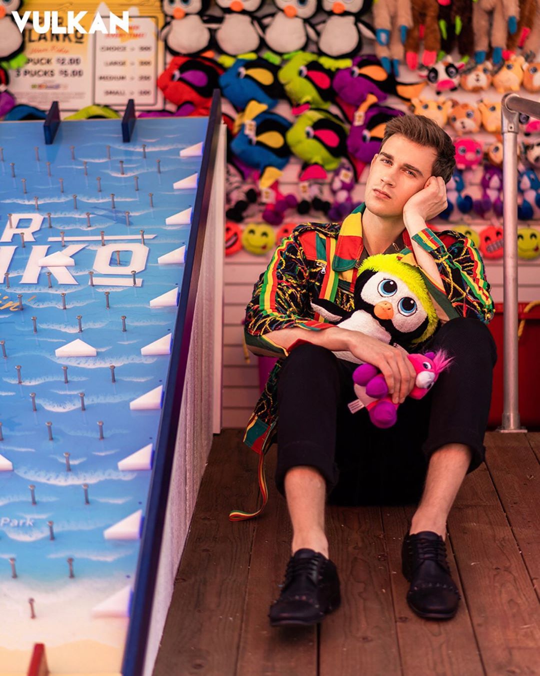 • Vibrant green, yellow, and red color blocking.