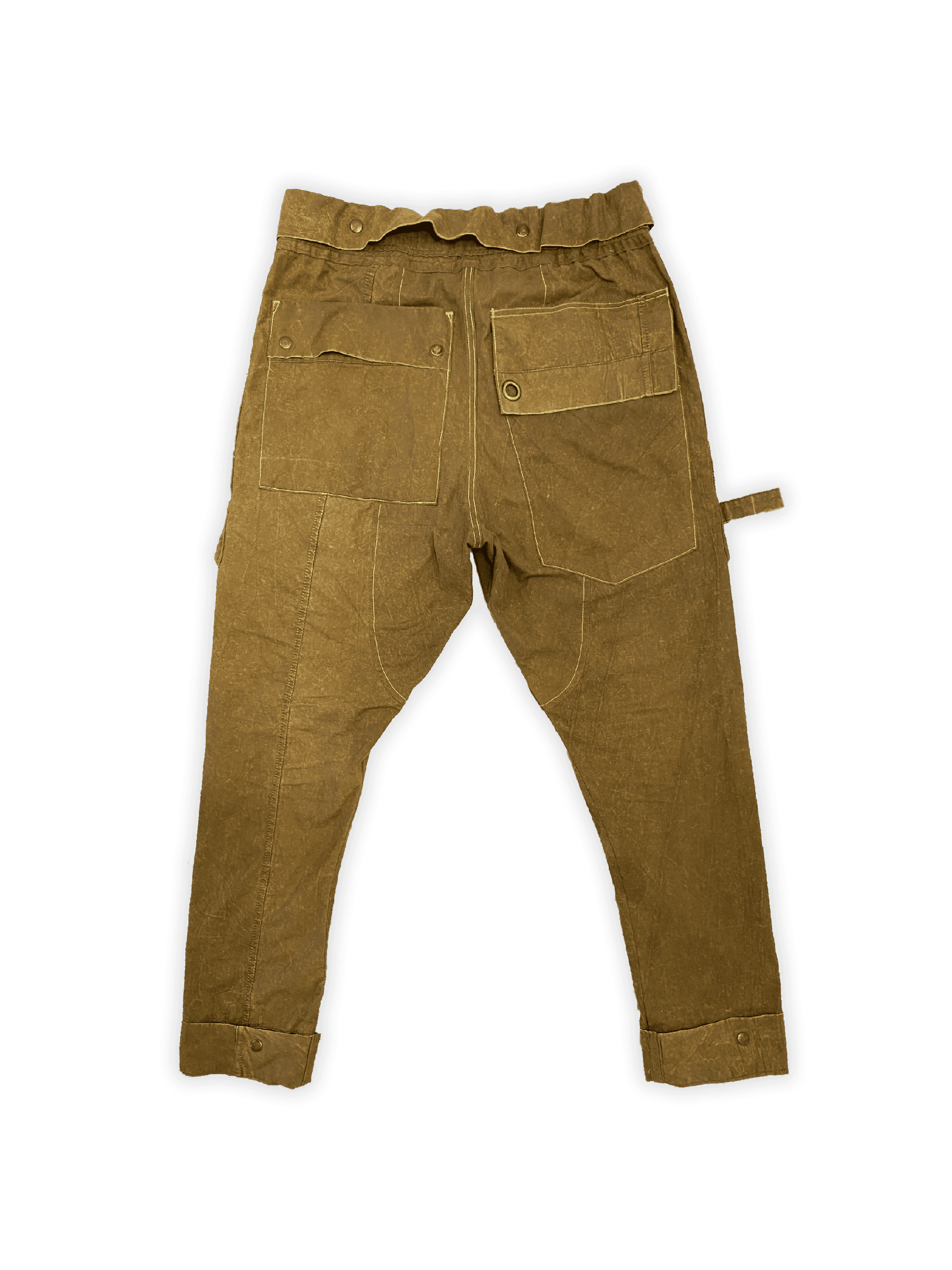 Unlike mass produced materials, the fabric of the Rick Military Joggers once served a vital purpose in the field. Made from 100% deconstructed military tents, the cotton canvas bears subtle weathered textures and tonal variations, adding to each garment’s uniqueness. These marks are not flaws, they are a narrative of resilience, survival, and adaptation, now transformed into wearable art.